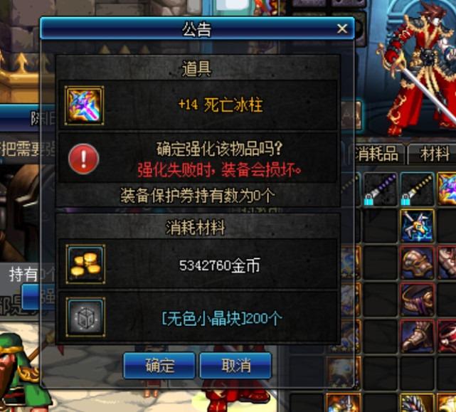 地下城勇士(死亡冰柱)属性:强化增加 40攻击时附加15 冰属性伤害